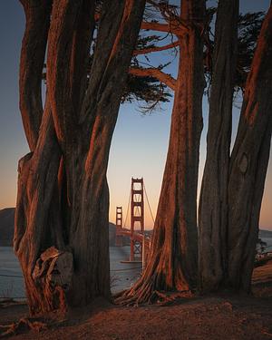 Golden Gate Bridge Framed by Two Trees